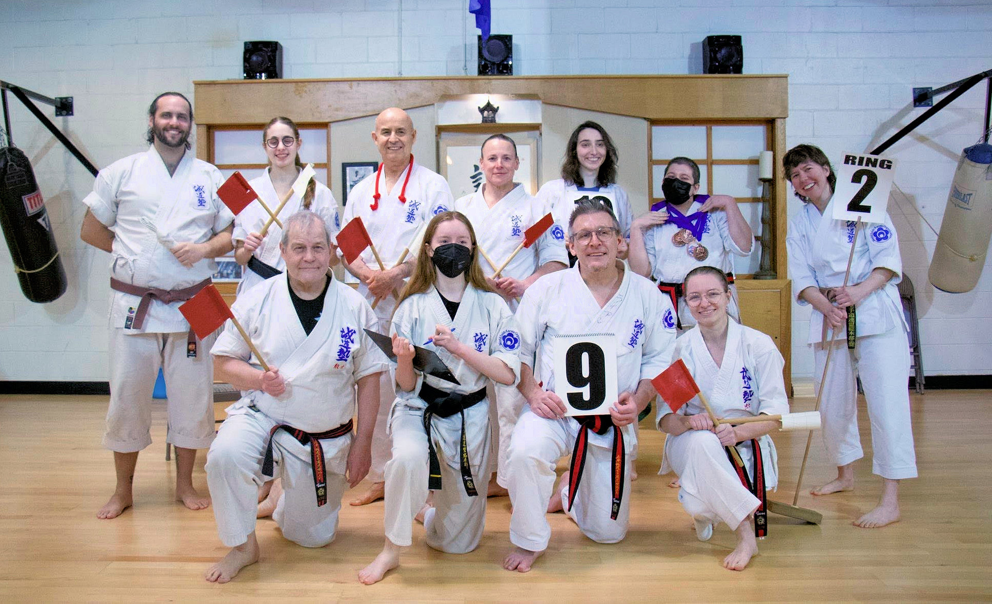 Back in March, we held our annual kids’ tournament – about 50 young karateka showed strong art and spirit. We’re also excited to have had members participating in the spring black belt testing cycle in New York, with Senpai Michelle Koerbel earning her Nidan, and three senior members – Senpai Todd Scales, Michele Curley, and Arturo Jauregui all testing for Yondan. We’re running a black belt test here for three senior members toward the end of April – Otto Matznik, Rebecca Bishop, and Steph Maieritsch.